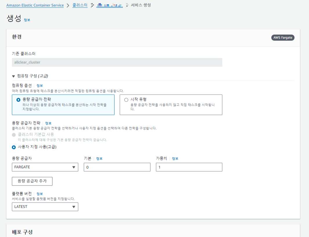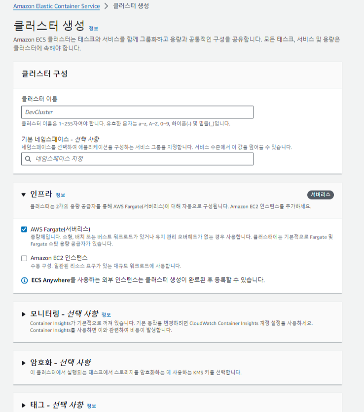ECS > 클러스터 > 클러스터 생성 클릭