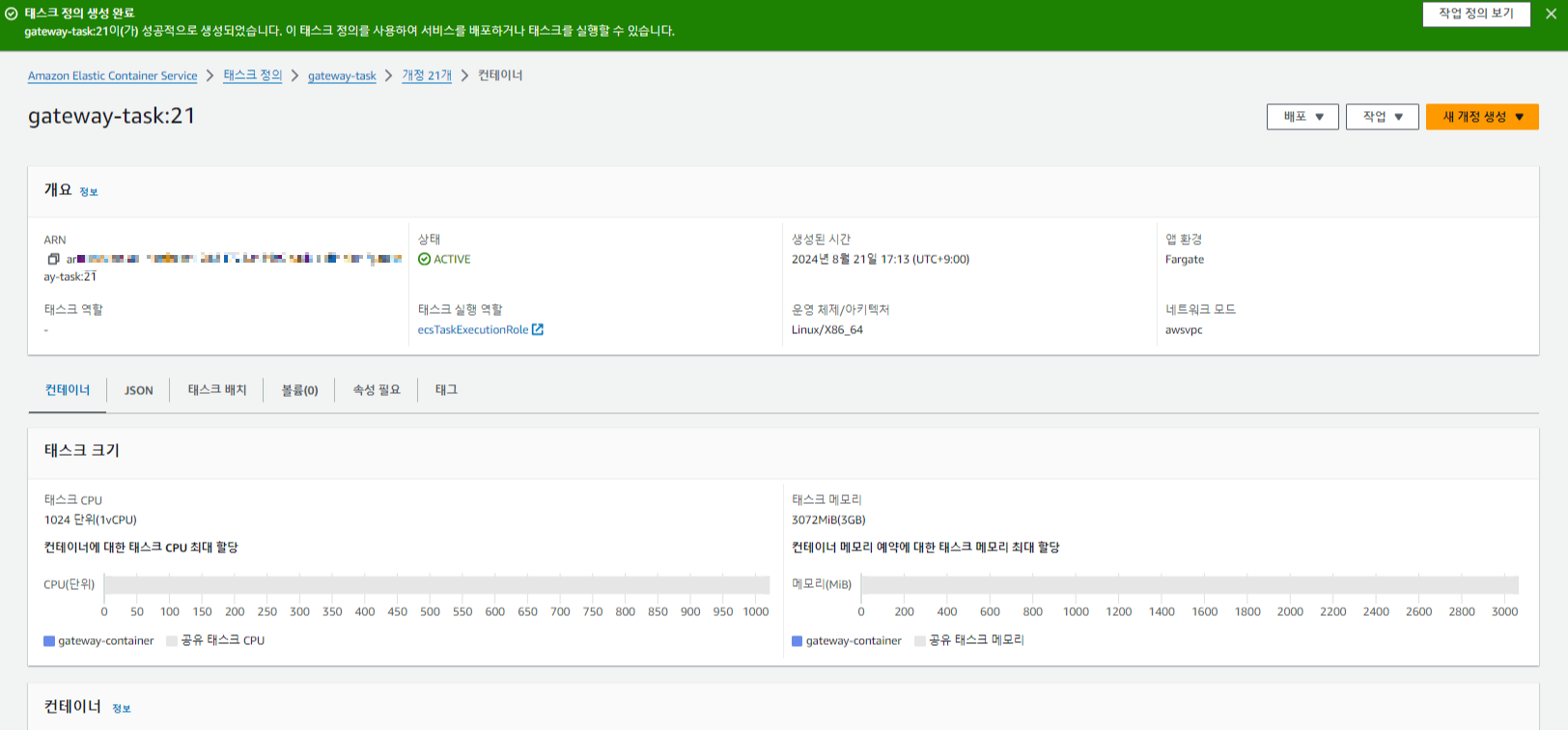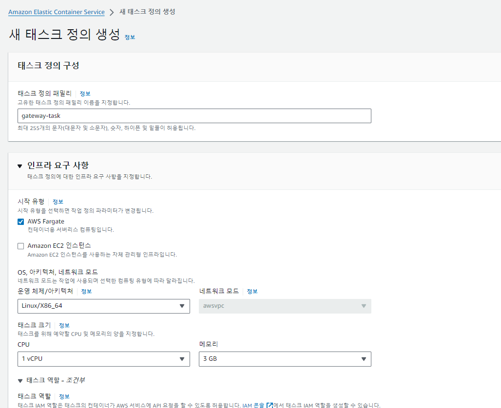ECS > 테스크 정의 >y > Repositories > 새 테스크 정의 생성 클릭