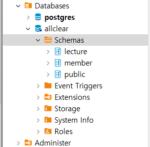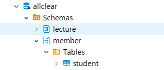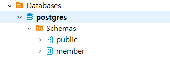결과적으로 이렇게 member 스키마 안에 테이블이 생성 된 것을 확인 할 수 있다.